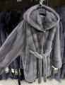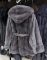 Шубка из меха европейской норки с капюшоном, модель кимоно, цвет лаванда.