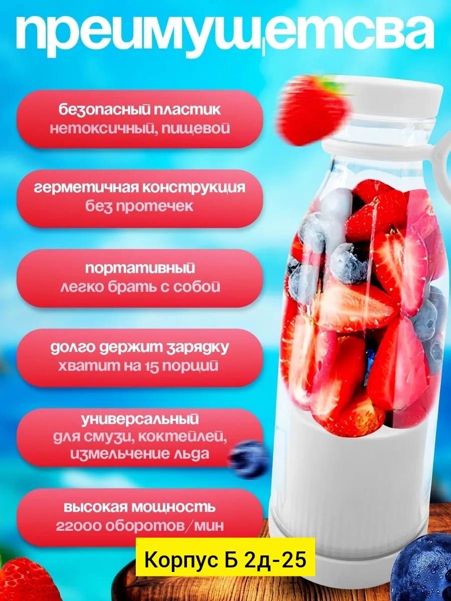 Портативный мини блендер для смузи идеальный спутник для готовки свежих напитков и коктейлей в любом месте С его мощным беспроводным двигателем и до 16 напитков на одной зарядке, это удобное и простое в применении устройство, которое можно использовать как для быстрых смузи и протеиновых коктейле.