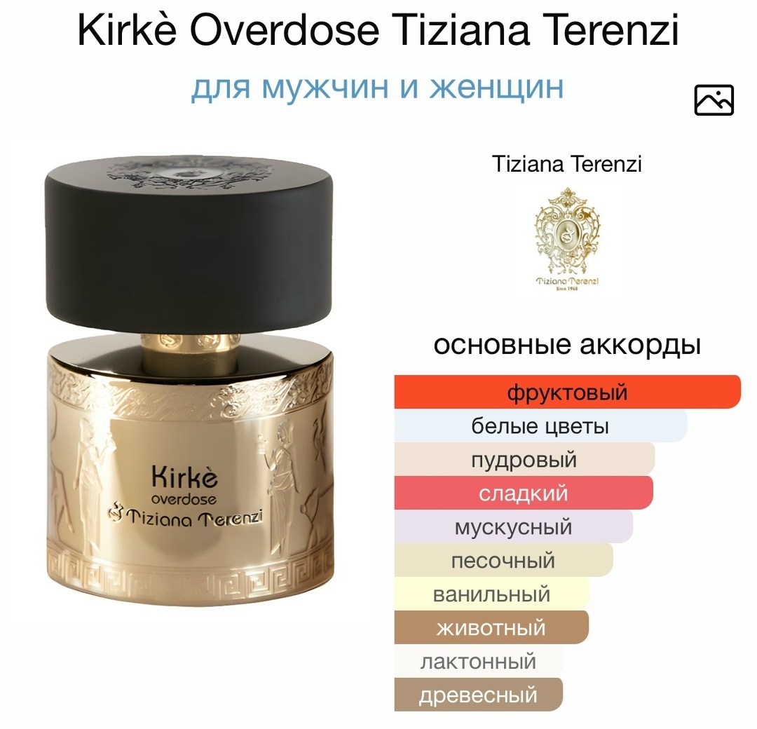Tiziana terenzi kirke overdose красивый и многогранный фруктово-шипровый унисекс-аромат, выпущенный в 2025 году нишевым парфюмерным домом tiziana terenzi Это более яркая и насыщенная версия аромата kirke, выходившего под маркой бренда в 2015 году.