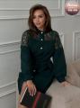 Платье-рубашка на пуговицах с декором из кружева на кокетке, переходящим на рукава это воплощение женственности, создающее романтичный образ и подчеркивающее безупречный вкус своей обладательницы.