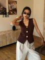 Трендовый жилет с золотыми пуговицами.