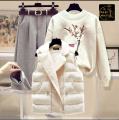 Женский комплект из трех предметов, осенне-зимний женский темпераментный жилет, свитер, брюки, теплый костюм из трех предметов.