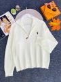 Женская кофточка-полузамок выполнена из мягкого трикотажа Модель с высоким воротником-стойкой и застежкой на молнию спереди На груди расположен небольшой логотип в виде силуэта Кофточка имеет свободный крой и длинные рукава, что делает е универсальной для создания стильных образов в повседневной жизни и на работе.