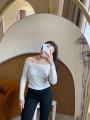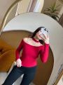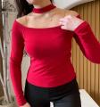 Страстный лонгслив с открытой линией плеч и изящным чокером-воротником Мягкая, эластичная ткань нежно облегает силуэт, подчркивая женственность и создавая эффектный акцент в образе.