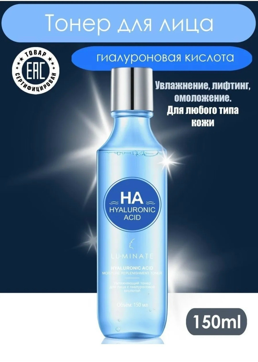 Тонер для лица и кожи вокруг глаз с гиалуроновой кислотой обеспечивает полноценное насыщение кожи, улучшает кровообращение, обогащает тканьи кислородом и глубоко увлажняет Основное действие тонера с гиалуроновой кислотой - восстановление природного рн кожи и ее подготовка к дальнейшим косметическим процедурам Гиалуроновая кислота разглаживает мелкие морщины, повышает упругость и эластичность кожи Регулярное применение делает кожу мягкой, увлажненной и сияющей Тонер усиливает действие последующих косметических средств, способствуя их лучшему проникновению Уже через две-три недели использования кожа становится мягче, бархатистее, исчезает чувство сухости и стянутости Средство подходит всем типам кожи, особенно для сухой, чувствительной и зрелой кожи Рекомендованный возраст: от 14 лет Упаковка тоника презентабельная, идеально подходит для подарка Бутылк упакован в яркую коробку, дополнительно защищенную слюдой Основные характеристики: тип: тоник для ухода за кожей типы кожи: для всех типов кожи, для зрелой кожи, для сухой кожи применение: для умывания, дневной уход, от покраснений область использования: лицо, область вокруг глаз целевая аудитория: взрослая пол: женский, мужской возрастной диапазон: от 14 лет объем: 150 мл упаковка: пластиковая бутылка страна-изготовитель: китай ключевые ингредиенты: гиалуроновая кислота, аллантоин, aha-кислота, растительный экстракт эффект от использования: восстановление, матирование, тонизирование, антивозрастной уход особенности состава: не тестируется на животных, подходит для ежедневного применения, проверено дерматологами, натуральные экстракты.