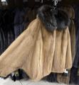 Шубка из меха импортной норки с капюшоном из меха куницы, модель кимоно.
