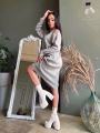 Трикотажное платье свободного кроя,в длине миди и с вырезом на плече.