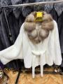 Импортной норки с воротником куницы, модель кимоно, цвет белый.