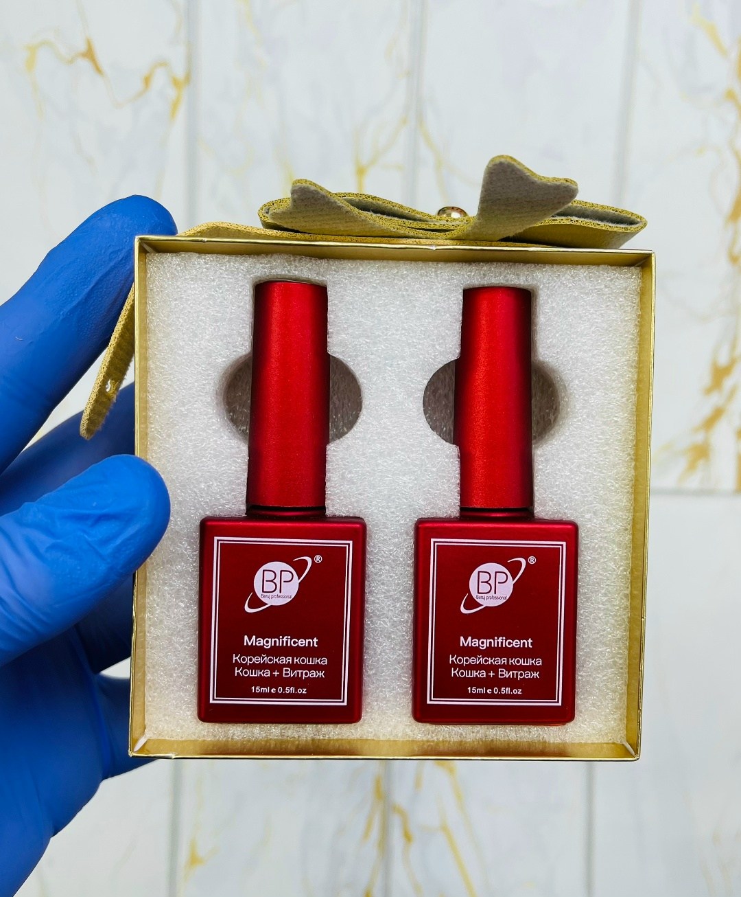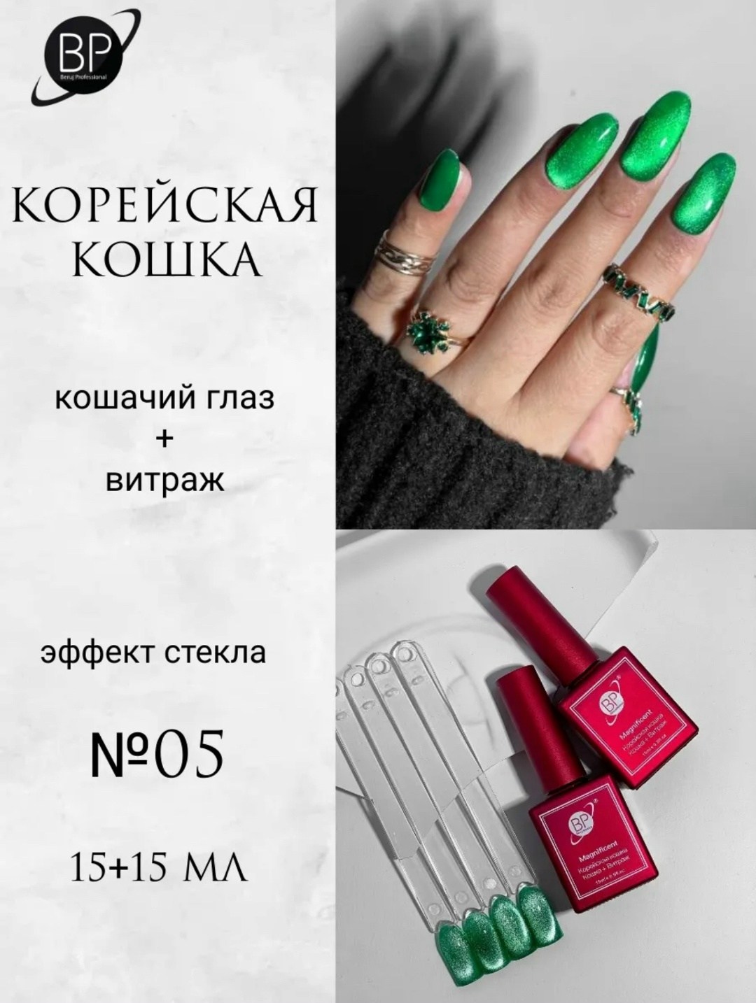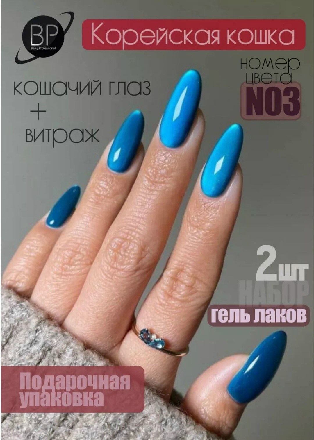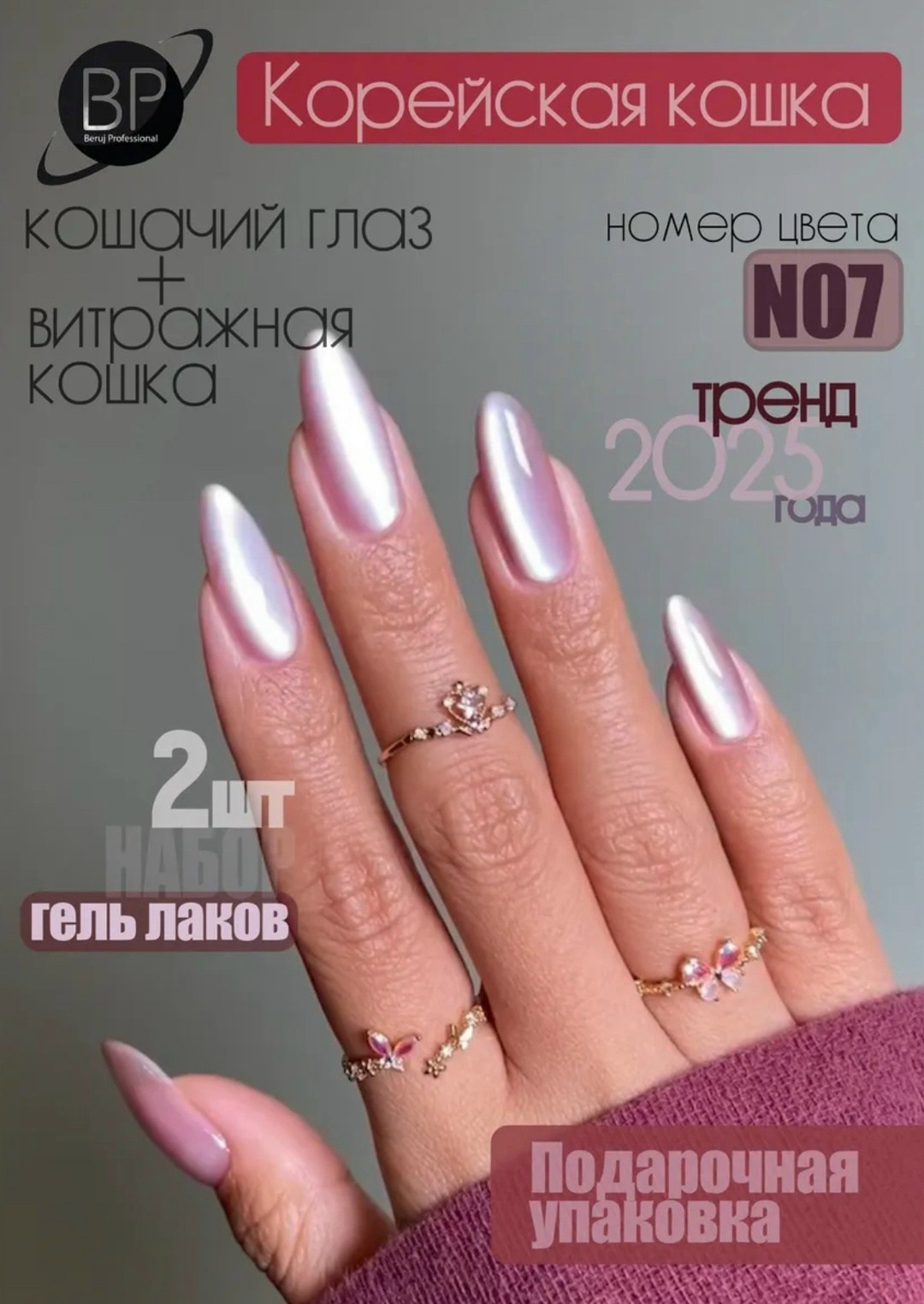 В набор входит цветовая основа кошачий глаз и гель лак витатраж для создания того самого корейского маникюра с эффектом 10d.