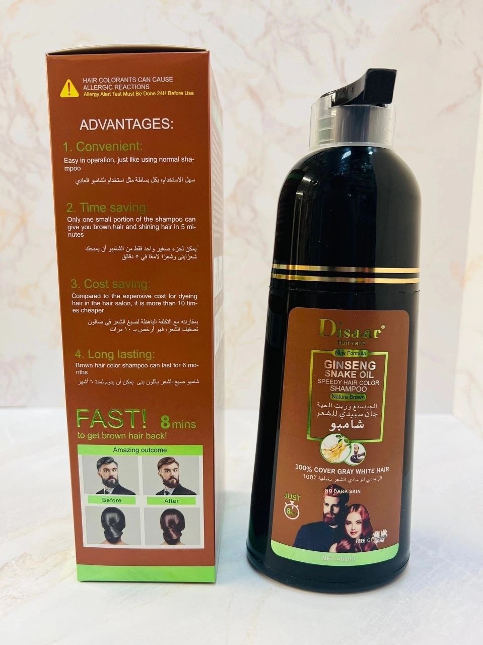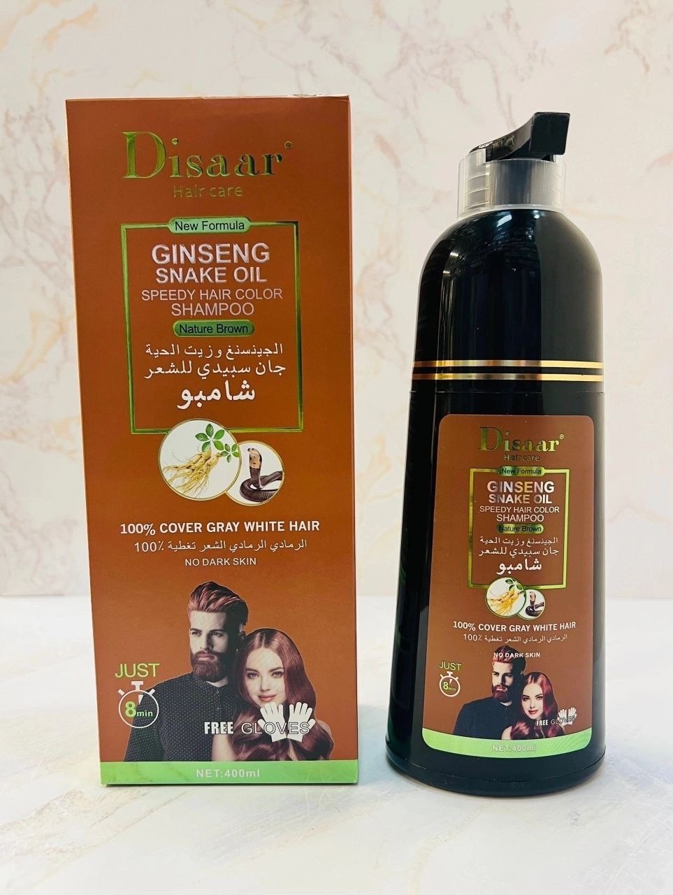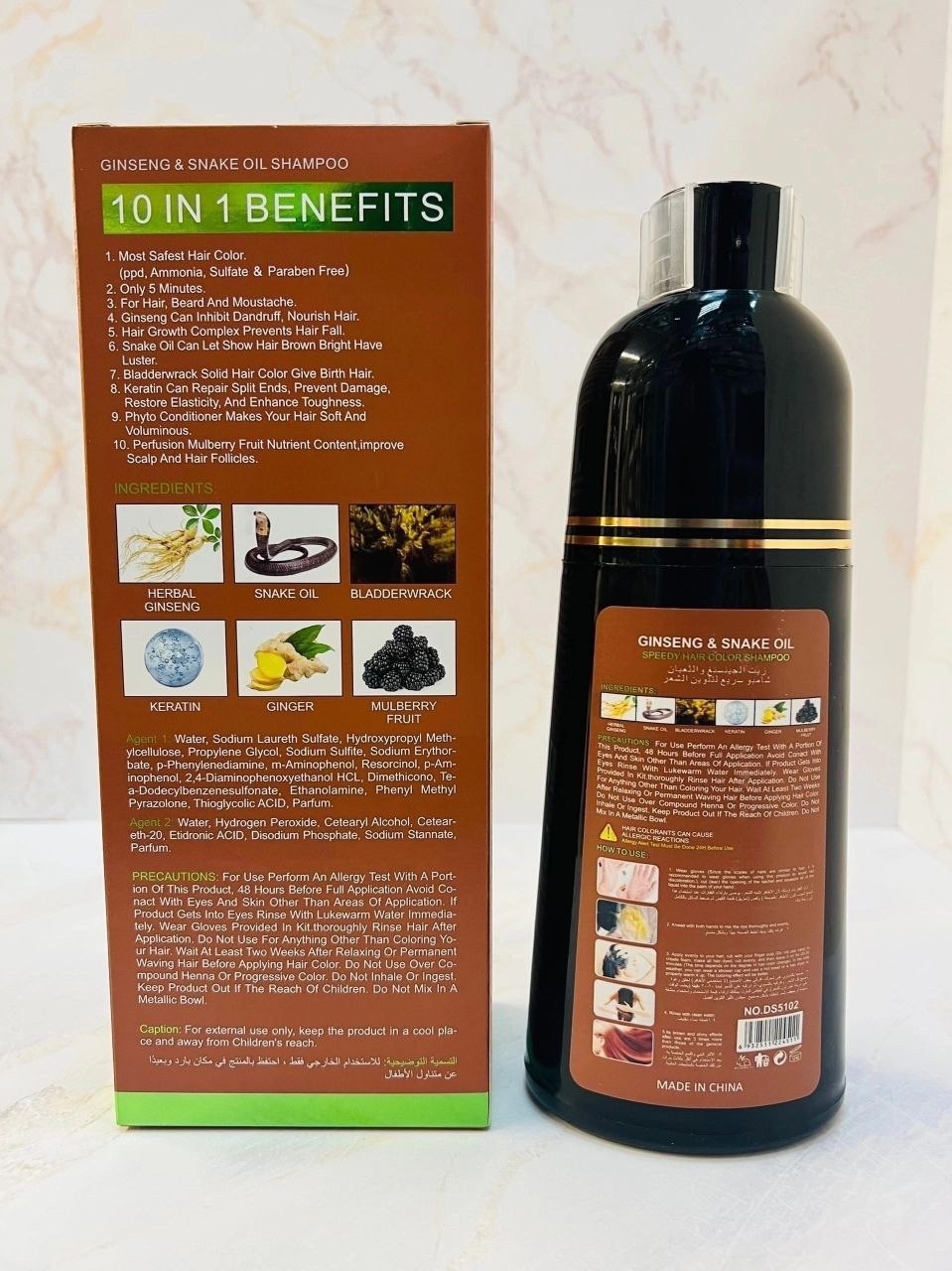 Шампунь обеспечивает быстрое и эффективное окрашивание волос всего за 8 минут формула сочетает женьшень, который питает и придает волосам здоровый блеск, кератин, восстанавливающий структуру волос, масло змеи для сияния и мягкости, а также масло ши,.