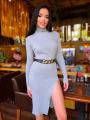 Эффектное платье вюс вырезом Плотно садится по фигуре, создавая роскошный вечерний образ.