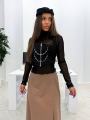 Готовый образ на любое мероприятие смотрится презентабельно и женственно шикарная юбка с интригующим размером ( 80 см ) потрясная водолазка / топ дизайнерский желет Вы будете неотразимы Так нежно и сексуально.
