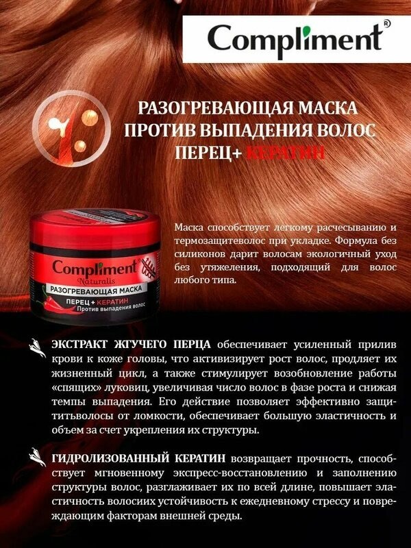 Compliment naturalis разогревающая маска против выпадения волос перец кератин 500мл.