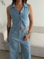 Джинсовая двойка-это универсальное рещение для создания как повседневных так и вечерних образов Благодаря своей лаконичной и стильной конструкции, этот брючный костюм с жилеткой станет незаменимой вещью в гардеробе каждой модницы!.