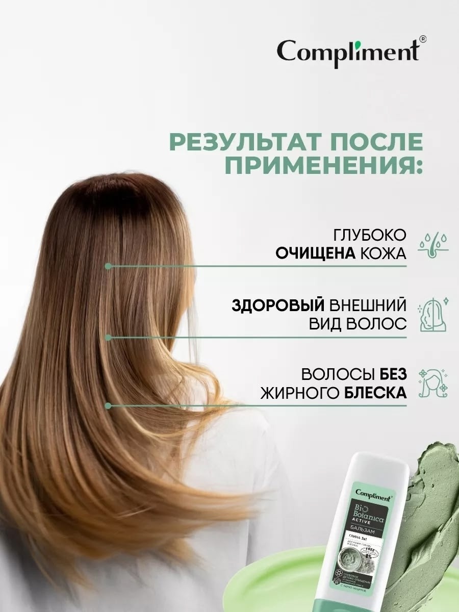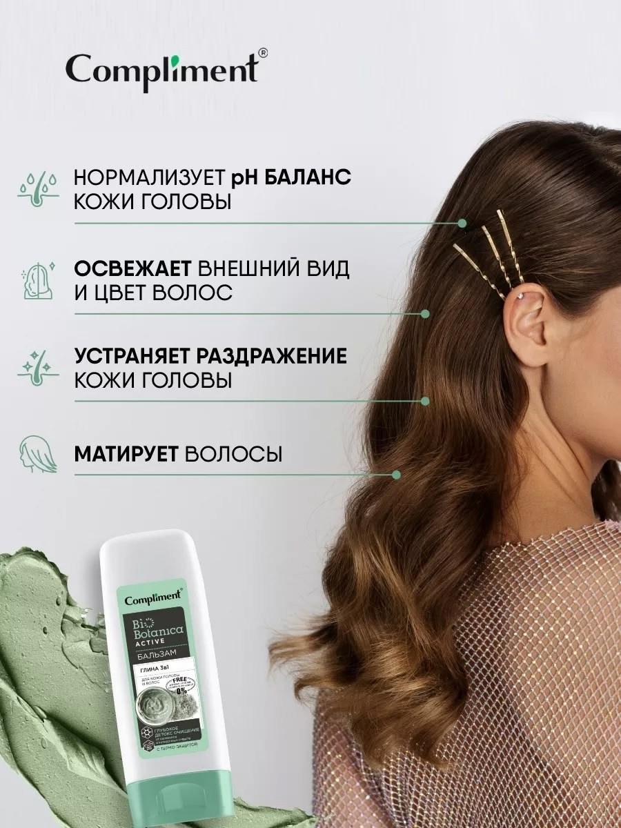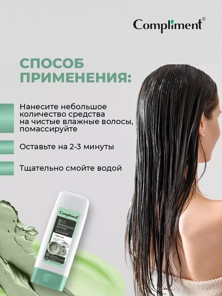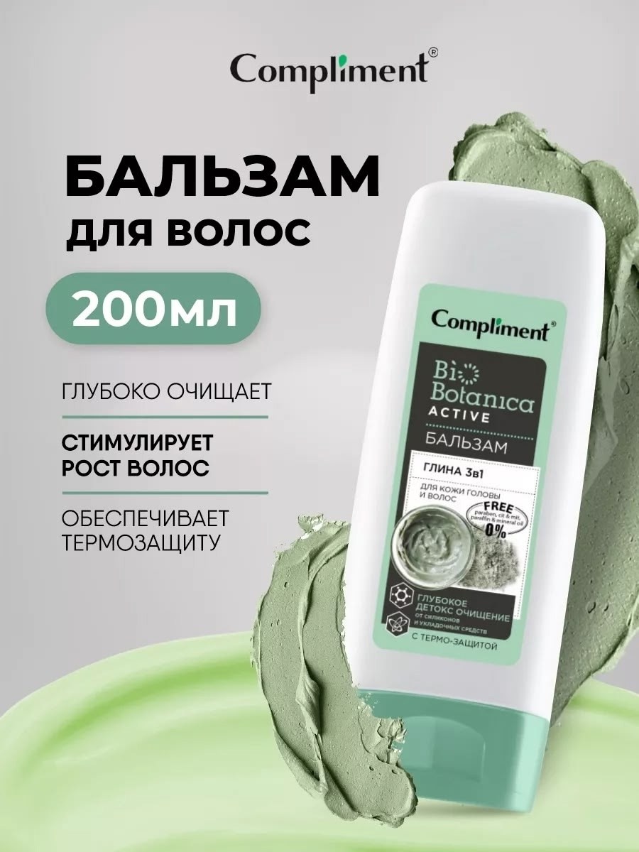 Compliment biobotanica active бальзам глина 3 в 1 для кожи головы и волос глубокое детокс очищение от силиконов и укладочных средств с термо-защитой ( 200 мл).