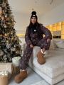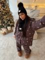 New невероятный зимний костюм, в котором невозможно остаться незамеченной Нежный принт снежинки добавляет образу женственности, а объемный крой тот самый уют, который мы ищем в холодную погоду.