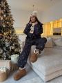 New невероятный зимний костюм, в котором невозможно остаться незамеченной Нежный принт снежинки добавляет образу женственности, а объемный крой тот самый уют, который мы ищем в холодную погоду.
