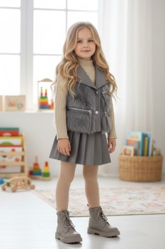 Потрясающая акция получите стильный комплект: водолазку, юбку из экокожи и жилетку из экомеха.