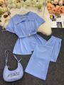 Шикарный вечерний костюм двойка в нежно голубом цвете.
