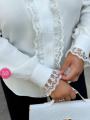 Эффектное блузка из лайт и гипюр невероятно мягкого, которое обладает универсальной посадкой и органично смотрится на всех типах фигур.