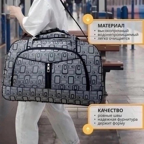 Сумка дорожная 55х35х18 Страна происхождения россия Изготовлено из материала текстиль Сумка для активного отдыха, оснащена двумя короткими ручками и одной длинной Сумка имеет одно глубокое основное отделение с подкладкой и один боковой карман для мелких вещей Объм изделия 30л Сумка универсальная, удобна и практична в использовании.