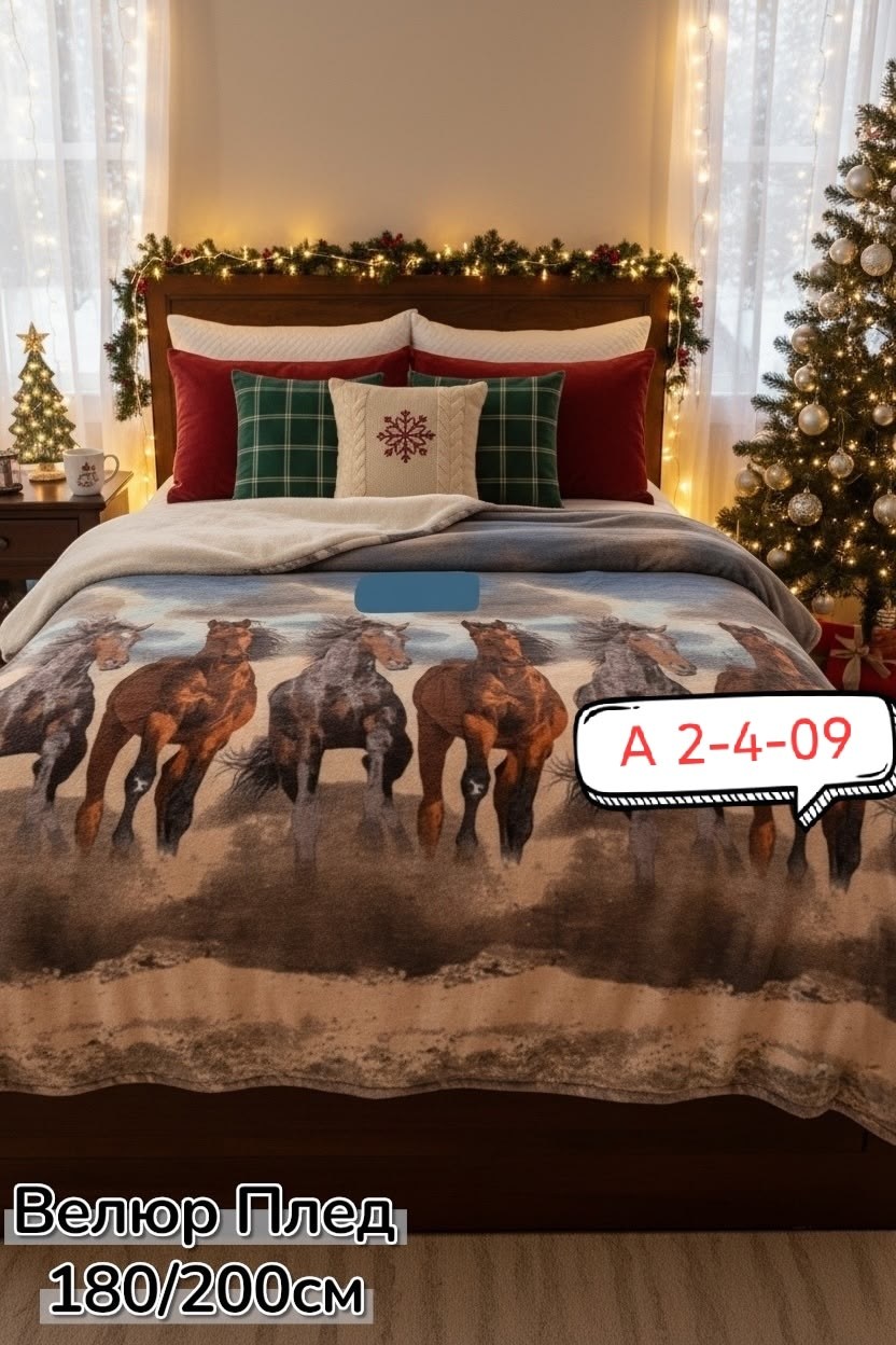 Плед покрывало велюровый лошади 350₽ хорошего качества размер 180/200см двушка.