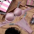Роскошный комплект со стразами от victorias secret хит 2020-2021 года Полу-люкс с именными лямками,трусы бразильянки, застжка-2 крючка Производство: фабричный китай.