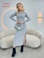 Модная новинка макси в обтяг с длинным рукавом идеально подойдет для повседневного выхода зимой благодаря классическому стилю кэжуал casual Плотный трикотаж позволяет безупречно подчеркнуть каждый изгиб, создавая сногсшибательный акцент на вашей фигуре.
