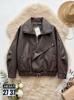 Акция акция на натурального кожаная бомбер свободный крой.