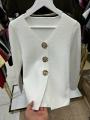 Трендовый жакет с золотыми пуговицами.