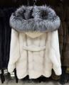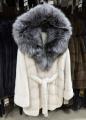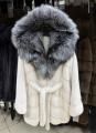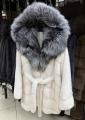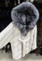 Шубка из меха европейской норки с капюшоном из меха чернобурки, модель кимоно, цвет колотый лед.