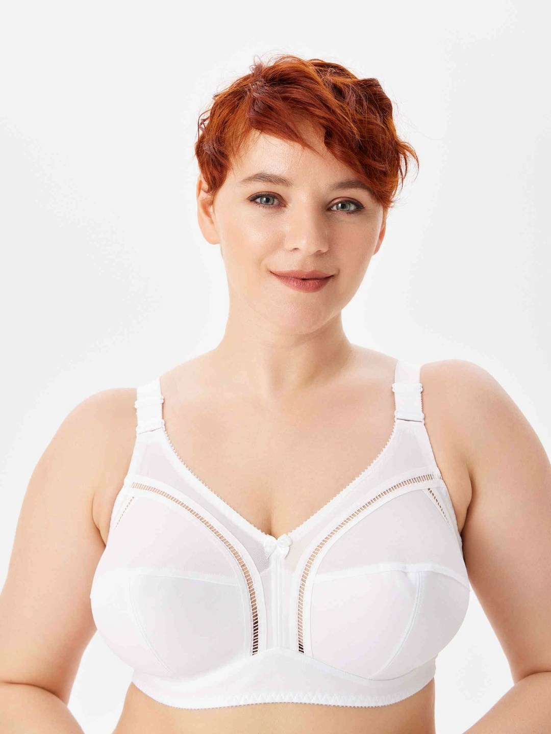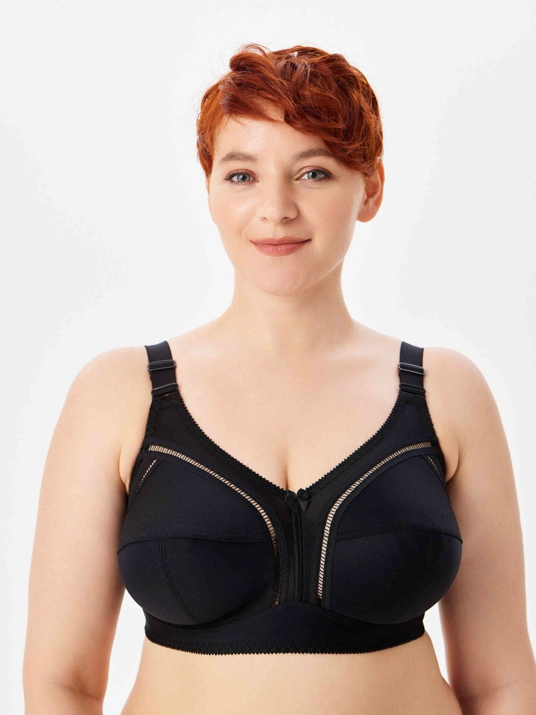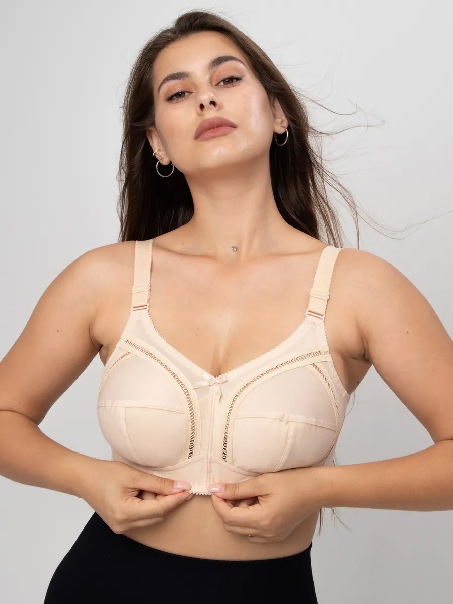 Закрытый бюстгальтер без косточек для большой груди Закрытая чашки, t-образный шов, широкий стан и широкие бретели комфортно поддерживают большую грудь Внутренняя деталь чашек на хлопковом подкладе Классический закрытый бюстгальтер с мягкими чашками без каркасов на каждый день.