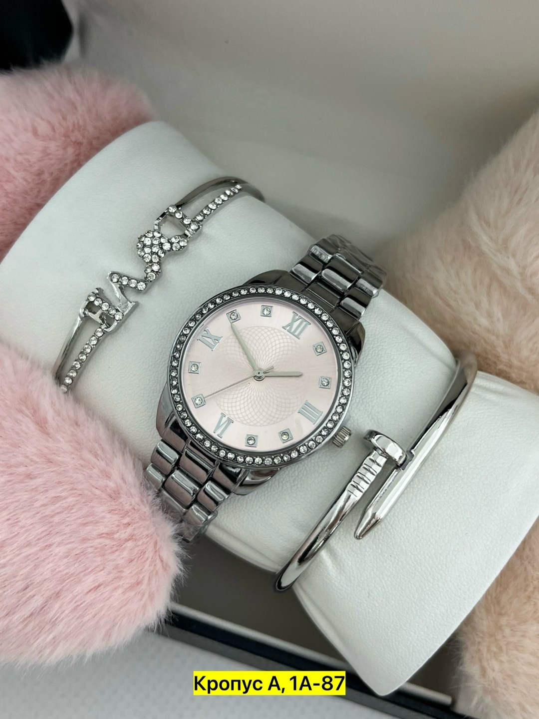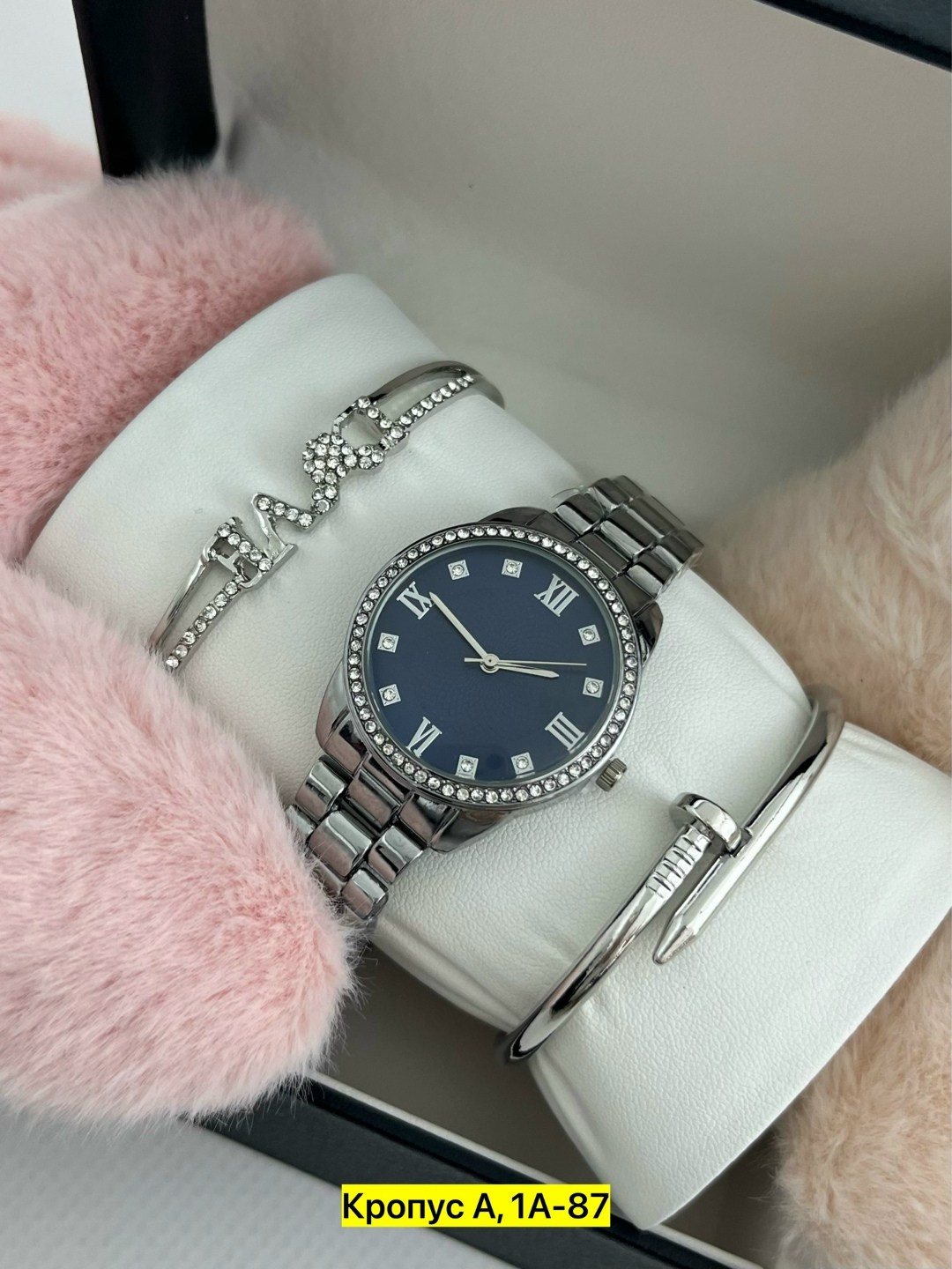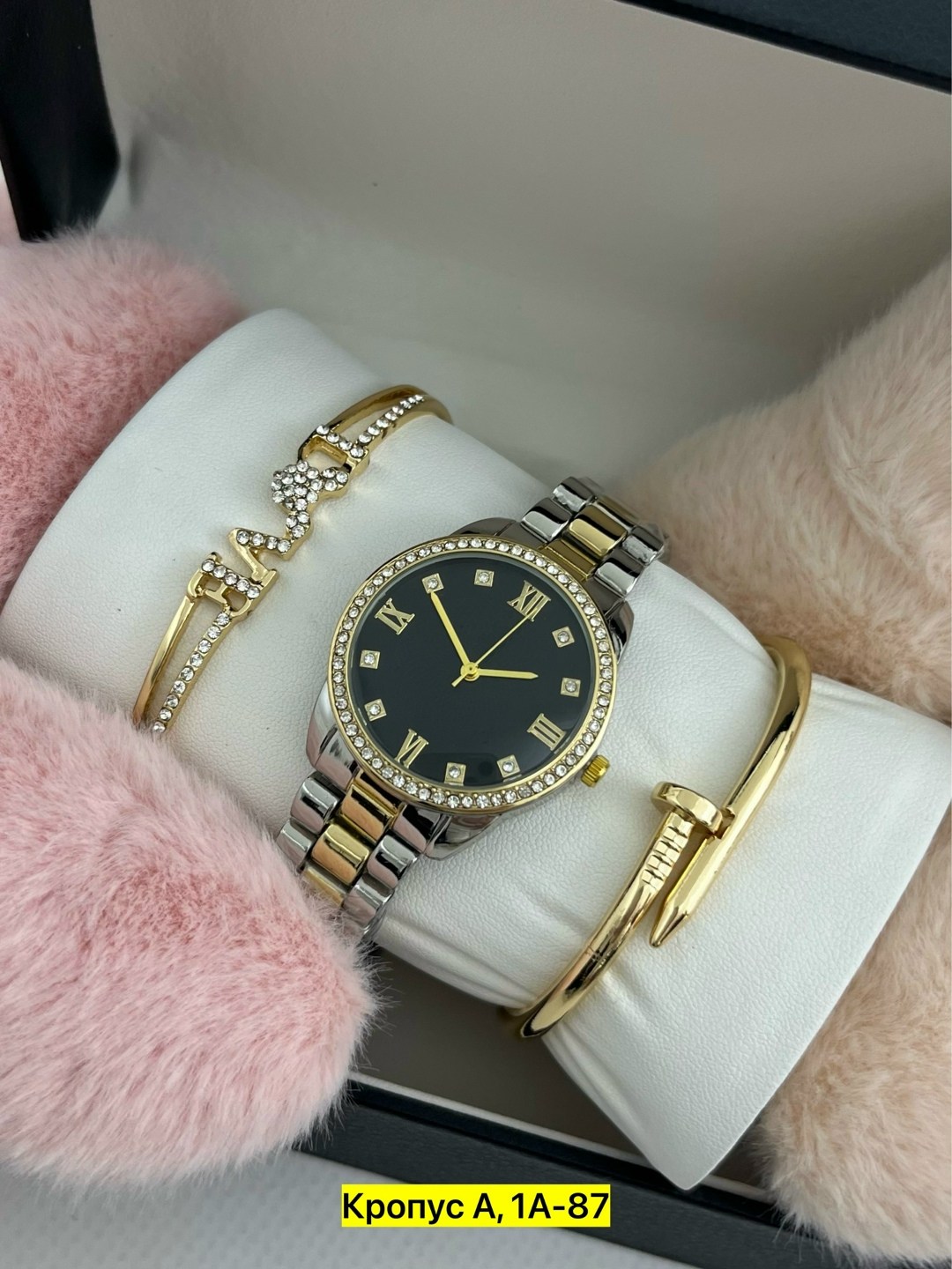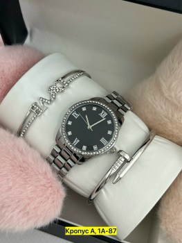 Набор часов, подходящий в качество подарка на праздники Набор включает в себя 1 часы, 2 браслета, коробку.