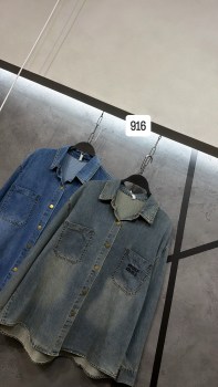 Джинсовая рубашка с вышитым логотипом бренда на кнопочках.
