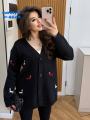 Женский оверсайз кардиган с вышивкой таксы.