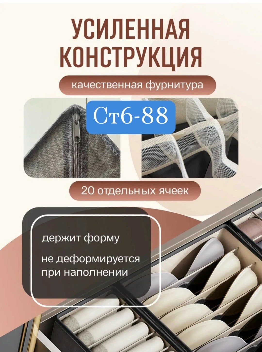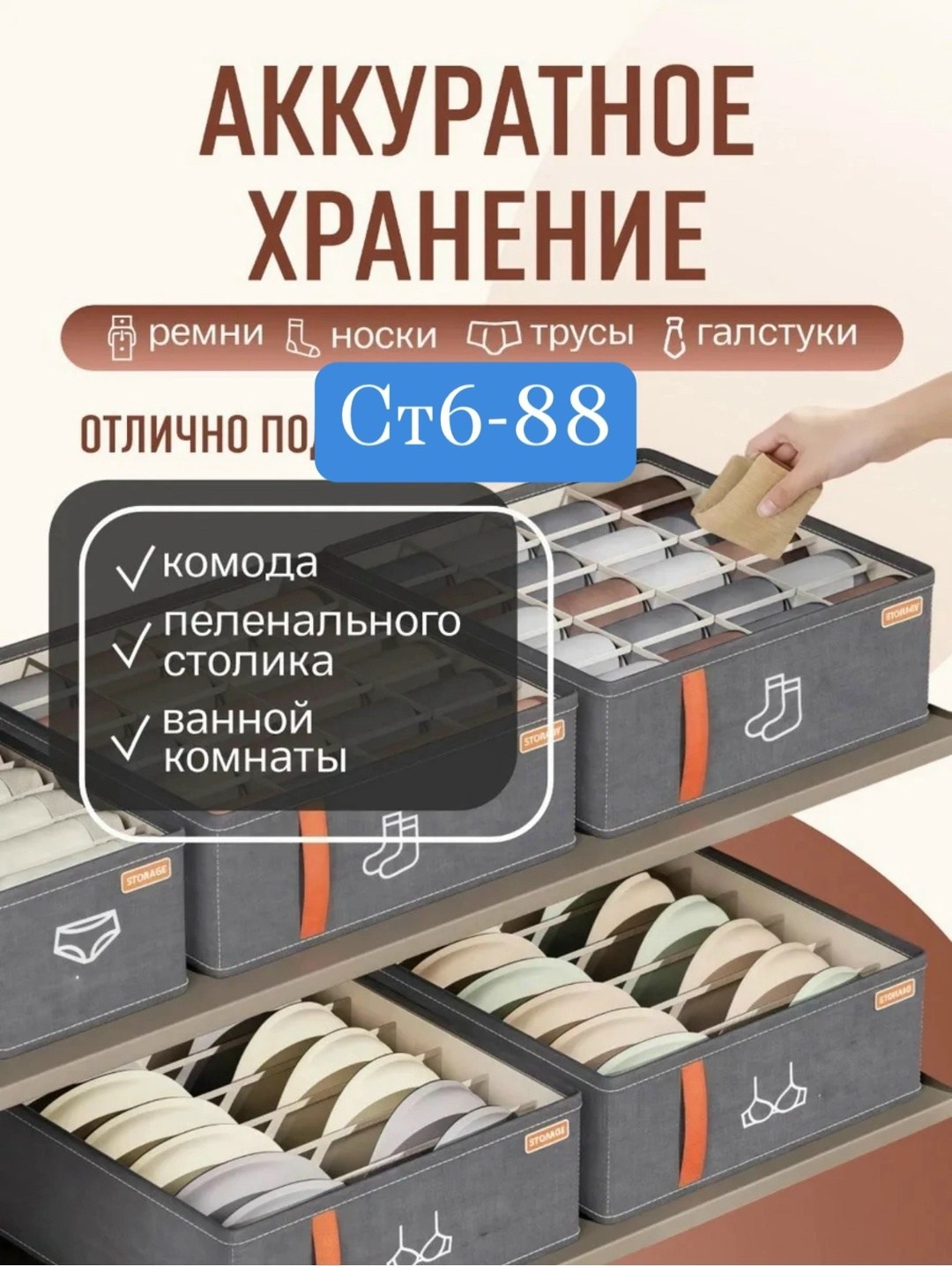 Органайзер для хранения носков трусов нижнего белья; органайзер для белья в шкаф; контейнер с разделителями для носков.