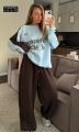 Уютный костюм-двойка с эффектным принтом и контрастными рукавами Свитшот свободной посадки джоггеры идеален на каждый день.