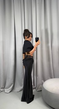 Струящаяся юбка макси из атласной тканьи с кружевной вставкой и мягкой драпировкой эффектный образ на выход.
