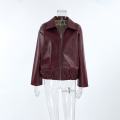 Кожаная куртка в цвете бургунди