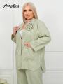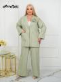Свободный крой пиджака и прямые брюки создают расслабленный, но в то же время собранный силуэт Деликатное мерцание страз, привносит в образ свежесть и оригинальность!.