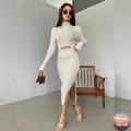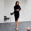 Короткий лонгслив с фигурным низом и юбка с боковым разрезом.