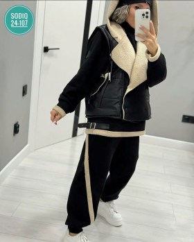 Тплый костюм - тройка, состоит из жилетки, худи и джоггеров.