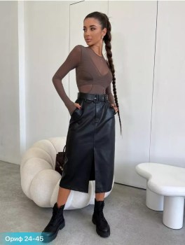 Длинная юбка миди с разрезом привлекает внимание своей красотой и изяществом.