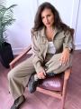 Костюм-двойка с брюками и укороченным жакетом, выполнен из костюмного полотна.