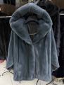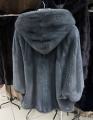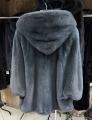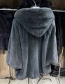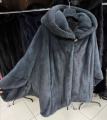 Шубка из меха импортной норки с капюшоном, модель пончо, цвет графит.
