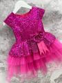 Платье пайетки, паетки фатин, розовое, малина.