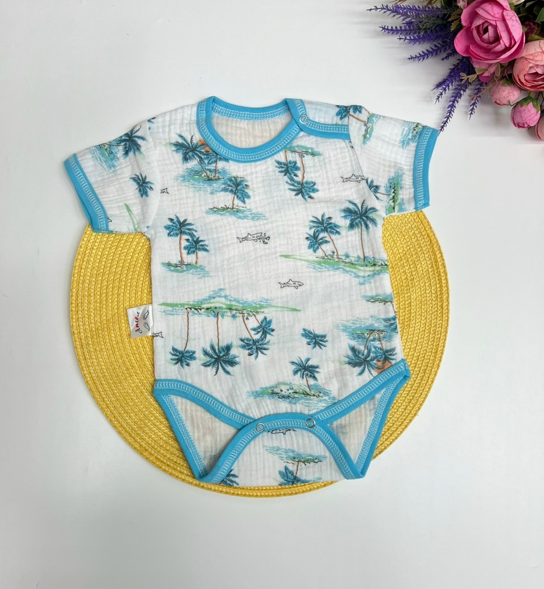 Новинка Боди с коротким рукавами для новорожднных ткань муслин.