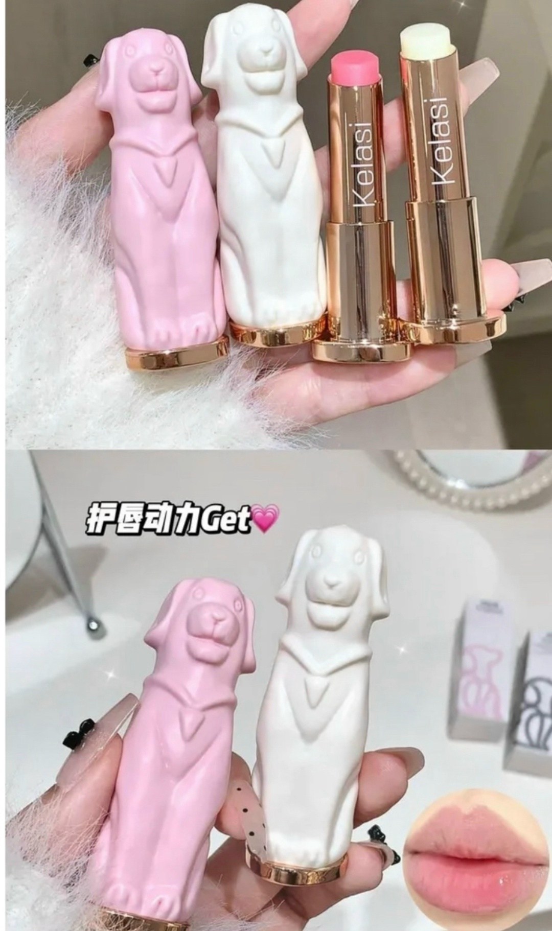 Бальзам для губ: молочная и розовая собачка.