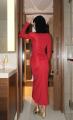 Элегантное платье миди с длинными рукавами и узлом на талии стильный вариант для вечернего выхода.