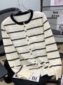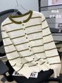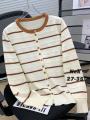 Супер распродажа весенне кардиган в контрастную полоску для женщин, модный однобортный вязаный свитер с круглым вырезом, повседневные универсальные тонкие топы цена: 450 рублей размеры:46 48 50 52 54 56 ед цвет без выбора производство китай успейте приобрести.